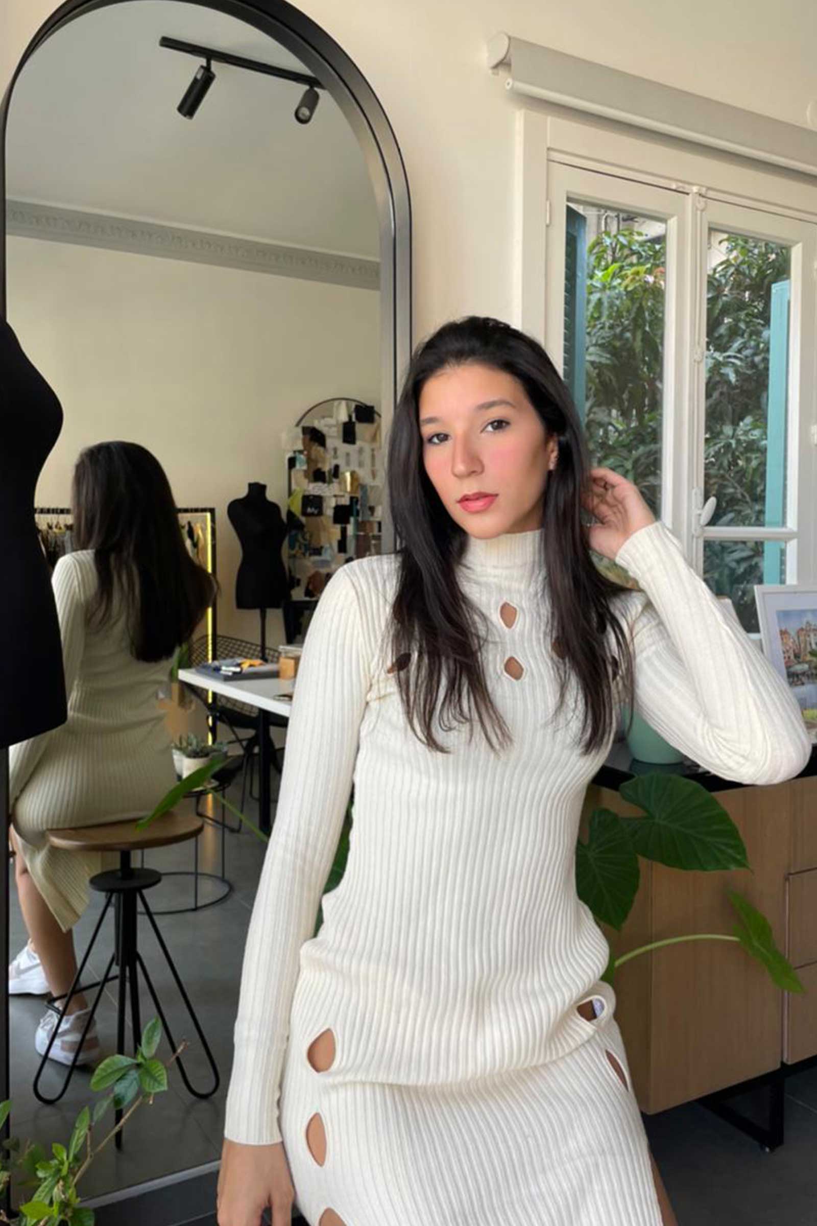 A moment of silence to appreciate this dress: cut-outs, double side slits, turtleneck, and long sleeves. A perfect combination that will definitely attract all eyes on you. Super unique cut and it hugs your figure in a marvellous way.